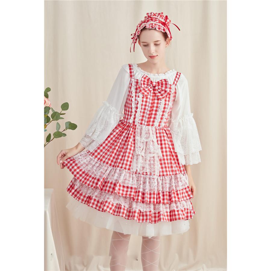 赤ギンガムチェックワンピース ゴスロリ ロリータファッション服の通販はワンダーウェルト ギンガムチェック ワンピース ロリータファッション ワンピース